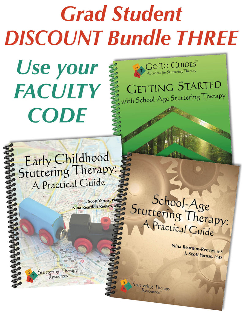 School-Age Stuttering Therapy: A Practical Guide explains how to provide comprehensive evaluations and therapy for school-age children and teens who stutter, ages 6 to 18. This 295-page, spiral-bound manual includes examples from the authors' practices, numerous sample goals, engaging therapy activities, and 50 pages of reproducible worksheets and forms so you can use our creative and effective strategies right away.